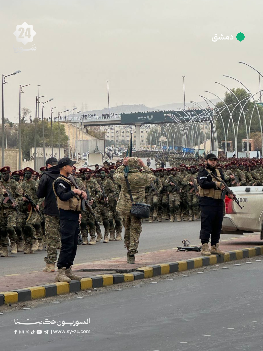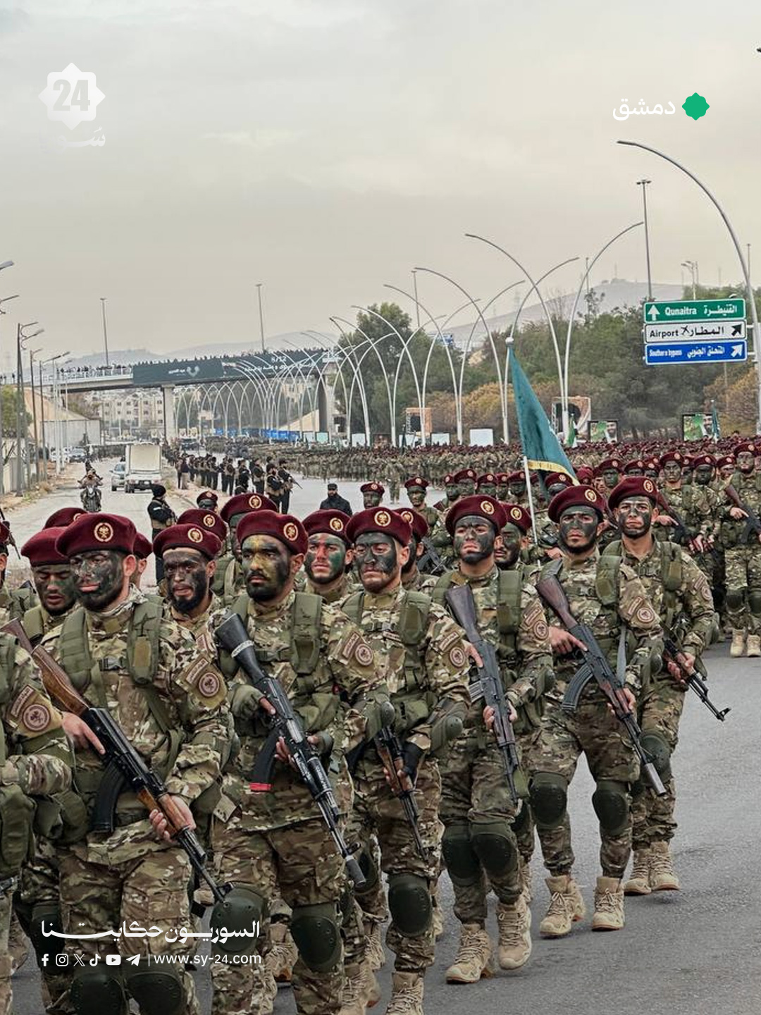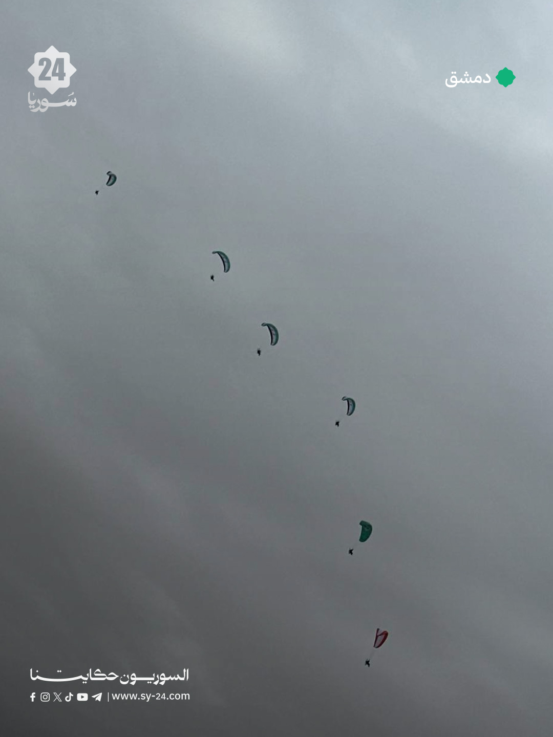 مراسل سوريا 24: بدء المسير العسكري بمشاركة الطائرات الشراعية على أوتوستراد المزة في دمشق بمناسبة يوم التحرير
