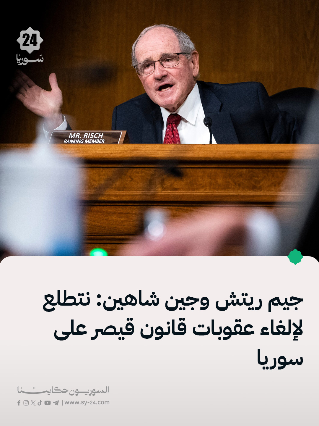 رئيس لجنة العلاقات الخارجية في مجلس الشيوخ جيم ريش وعميدة الديمقراطيين فيها جين شاهين بمناسبة ذكرى سقوط الأسد: