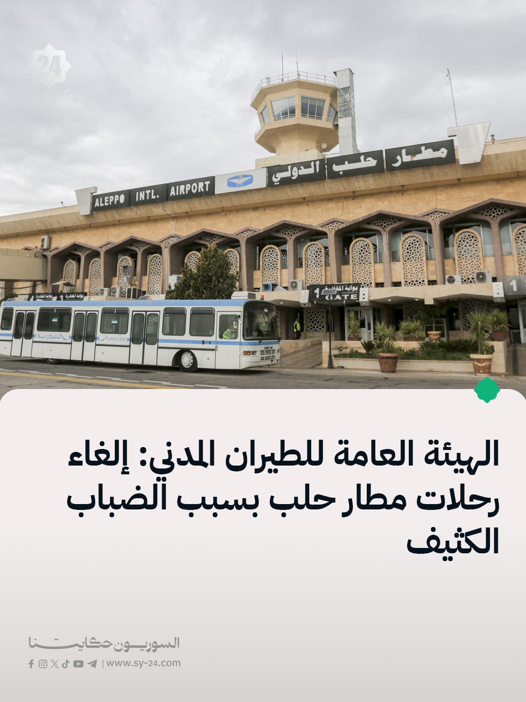 تم إلغاء عدد من الرحلات الجوية إلى مطار حلب الدولي بسبب انخفاض مستوى الرؤية الناتج عن الضباب الكثيف.