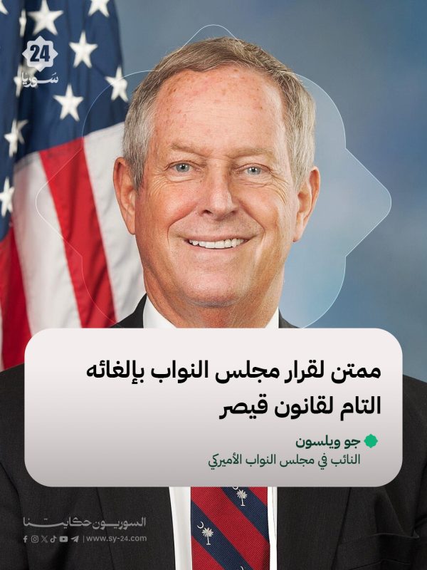 النائب في مجلس النواب الأميركي جو ويلسون: ممتن لقرار مجلس النواب بإلغائه التام لقانون قيصر