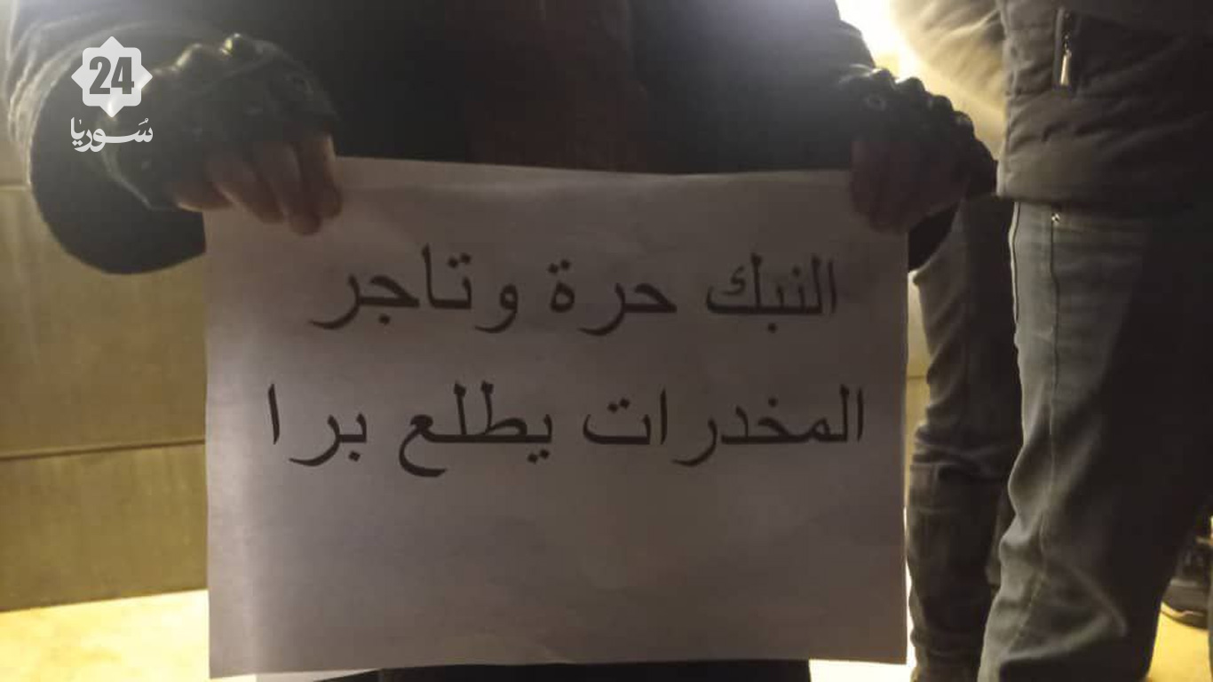 مع إعلان خبر توقيف الشابين، خرج عدد من أهالي النبك في وقفة احتجاجية سلمية أمام ساحة “كلمة النبك”، للتعبير عن رفضهم تصرفات تجار المخدرات، وأوضح المتظاهرون أن الوقفة جاءت للمطالبة بالإفراج عن الشابين، وللتنديد بالفساد واستغلال النفوذ.