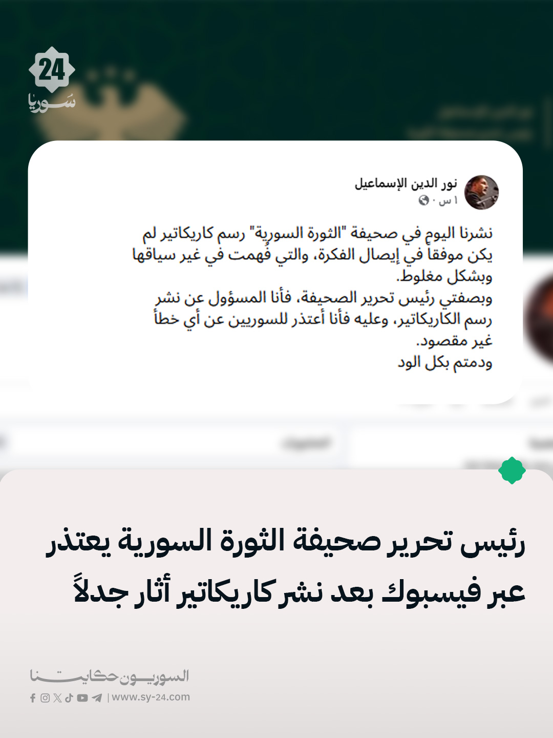 📌 نُشر رسم كاريكاتير في صحيفة “الثورة السورية” لم يكن موفقاً في إيصال الفكرة كما فُهم الكاريكاتير خارج سياقه وبشكل مغلوط.
