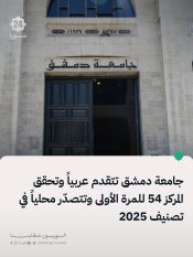 جامعة دمشق تتقدم عربياً وتحقق المركز 54 للمرة الأولى وتتصدّر محلياً في تصنيف 2025