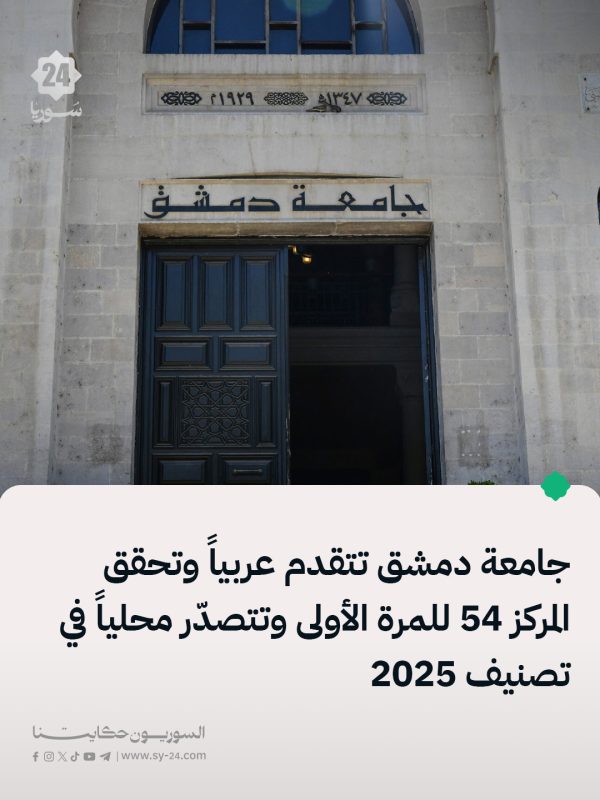 📌 جامعة دمشق تتصدر محلياً في التصنيف