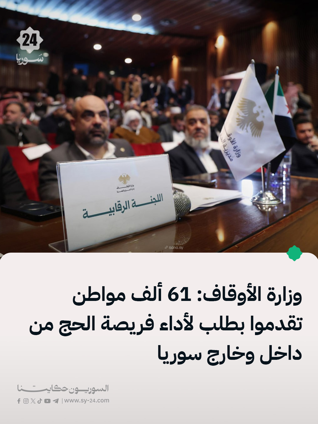 📌 تقدّم 62103 مواطن لأداء فريضة الحج هذا العام من داخل سوريا وخارجها.