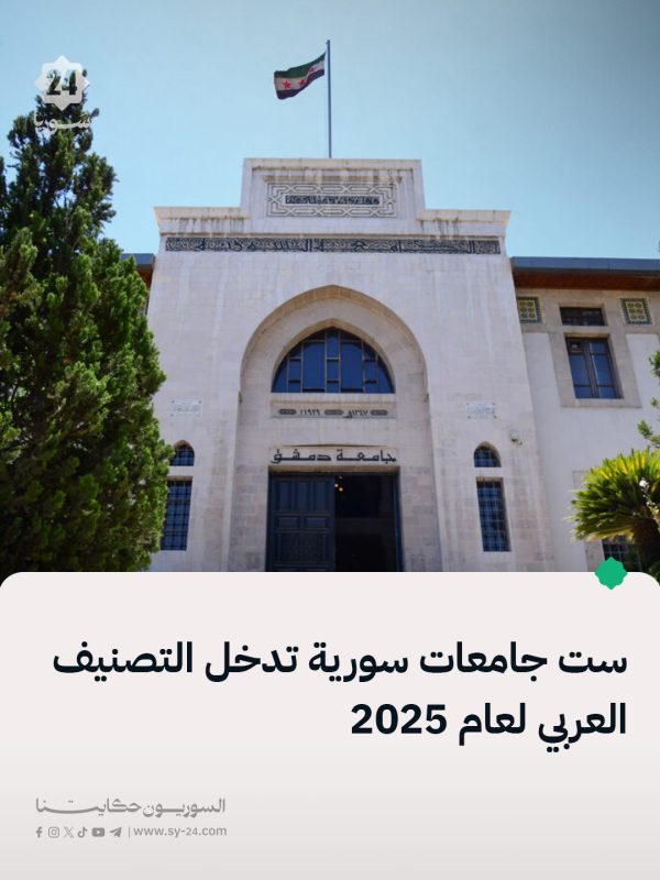 ارتفع عدد الجامعات السورية المدرجة في التصنيف العربي للجامعات لعام 2025 إلى ست جامعات بعد أن كان أربعاً.