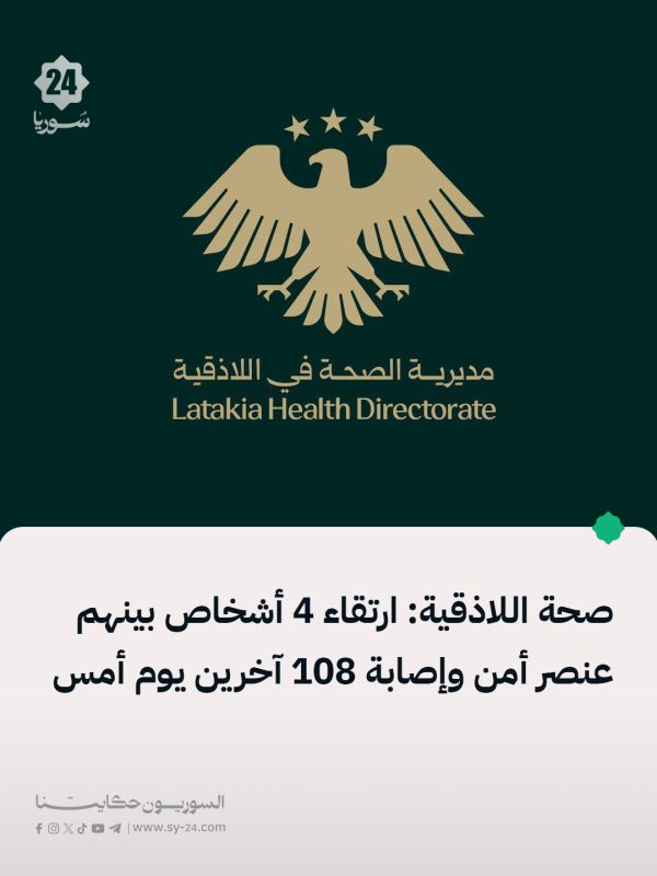 📌 أسفر الاعتداء من مجموعات من فلول النظام في اللاذقية عن ارتقاء 4 أشخاص أحدهم من عناصر قوى الأمن، وإصابة 108 أشخاص بين مدنيين وعناصر أمن.