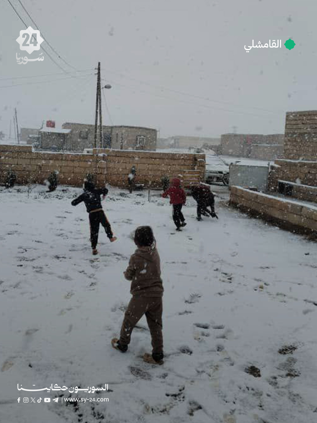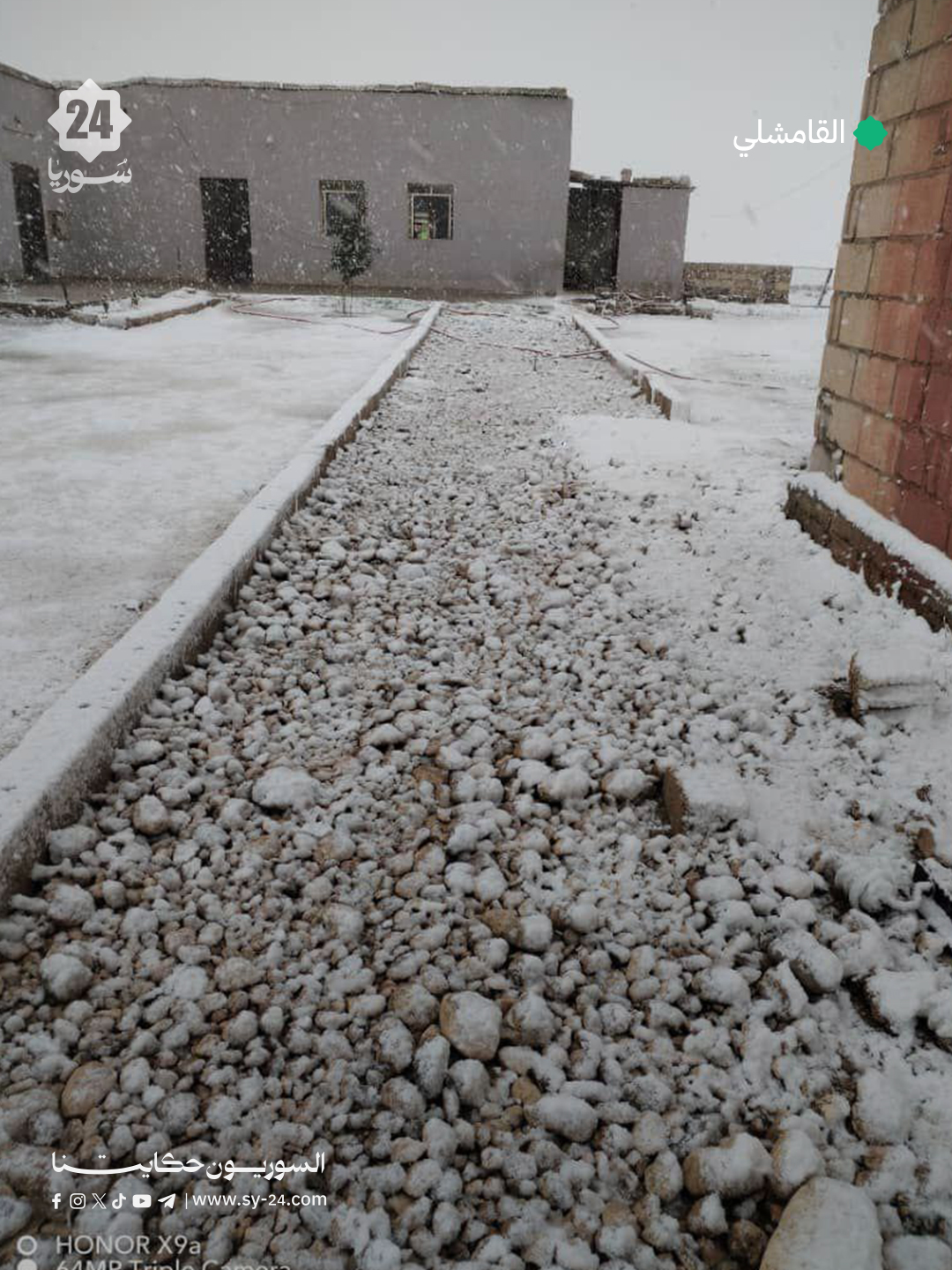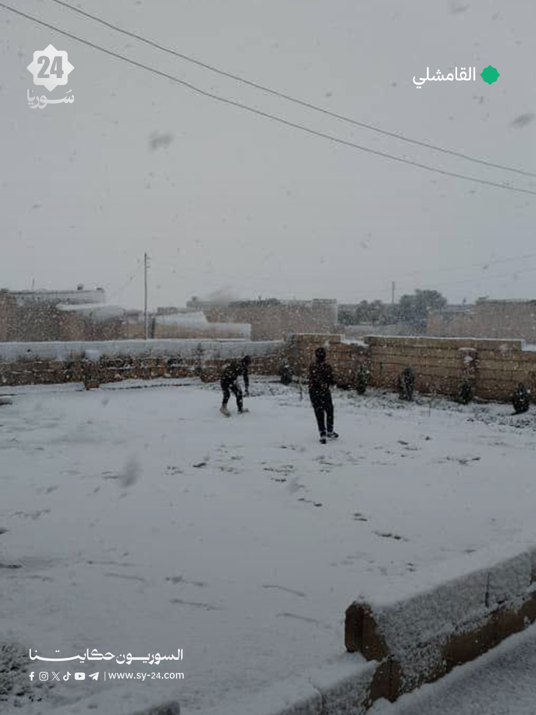 عدسة سوريا بلس توثق تساقط الثلوج في القامشلي بريف الحسكة