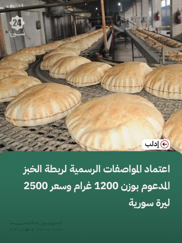 📌 اعتماد المواصفات الرسمية لربطة الخبز المدعوم بوزن 1200 غرام وسعر 2500 ليرة سورية.