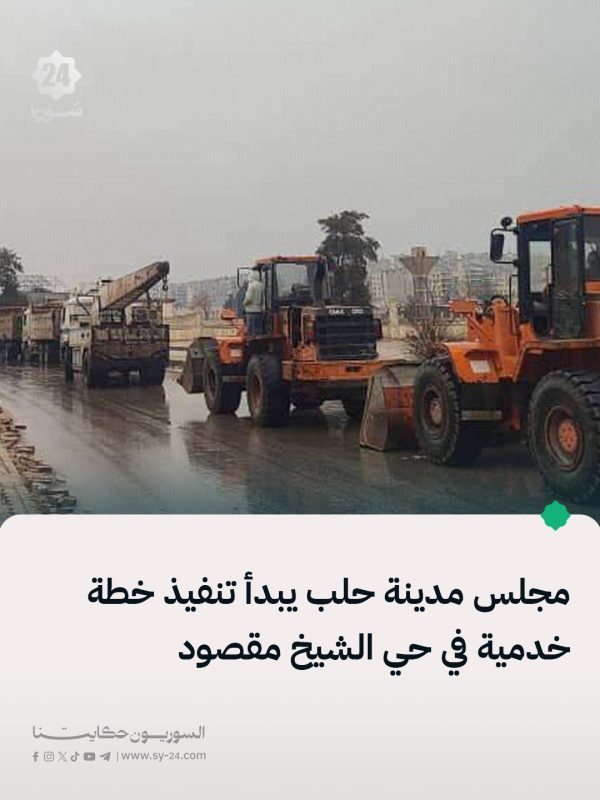 باشر مجلس مدينة حلب صباح اليوم تنفيذ خطة خدمية لتحسين الواقع الخدمي في حي الشيخ مقصود.