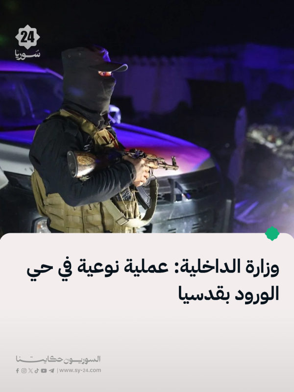 📌 نفذت وحدات الأمن الداخلي في ريف دمشق بالتعاون مع فرع مكافحة الإرهاب عملية استباقية استهدفت مجموعة مسلحة خارجة عن القانون.