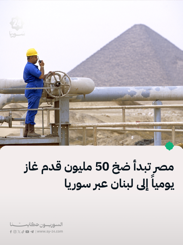 📌 سوريا تحصل على 50 مليون قدم غاز يومياً منذ نهاية الأسبوع الماضي