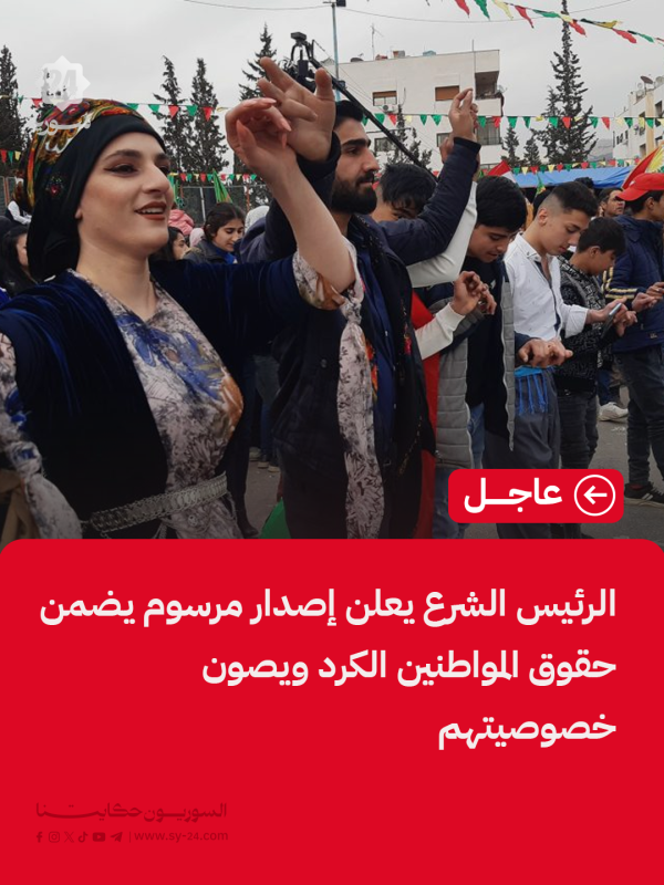 الرئيس الشرع يصدر مرسوماً يؤكد الاعتراف الرسمي بالأكراد كمكون أساسي من الشعب السوري ويمنحهم كامل الحقوق الثقافية واللغوية.