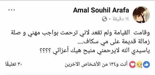 أما في حسابها على موقع التواصل الاجتماعي “فيس بوك” فكتب عرفة “قامت القيامة ولم تقعد لأني ترحمت بواجب مهني وصلة زمالة قديمة على مي سكاف…. يا سيدي الله لا يرحمني منيح هيك أعزائي”؟
