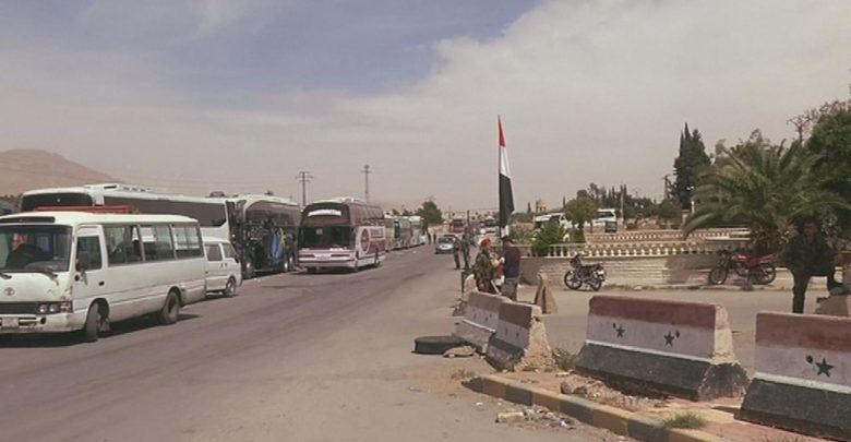 دخلت عدة حافلات إلى مدينة نوى في ريف درعا الشمالي، من أجل نقل آخر دفعة من مهجري محافظة درعا، باتجاه الشمال السوري.