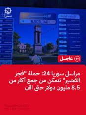 مراسل سوريا 24: حملة “فجر القصير” تتمكن من جمع أكثر من 8.5 مليون دولار حتى الآن
