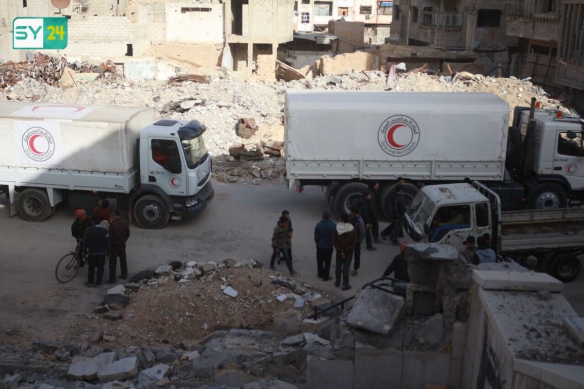 دخول قافلة المساعدات الإنسانية إلى دوما في الغوطة الشرقية