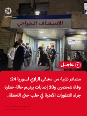 يذكّر أن الائتلاف الوطني السوري حذر في وقت سابق من كارثة إنسانية قد تصيب ملايين السكان في محافظة إدلب، في حال تفشي فيروس كورونا، نتيجة ضعف القدرات الطبية بعد تدمير المشافي والمراكز الصحية من قبل النظام وروسيا، وإيقاف الدول المانحة دعم القطاع الطبي في المنطقة.