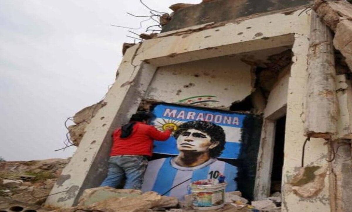 وأكد أنه “رسم صورة مارادونا على مبنى مدمر في مدينة بنش، كان الهدف منه إيصال رسالة لعشاق كرة القدم الذين لم يسمعوا بالظلم الواقع على الشعب السوري، ومن خلال الرسمة يمكنهم مشاهدة الدمار والسؤال عن أسبابه، وبالتالي من لم يسمع بجرائم النظام وروسيا سيسمع بها”.