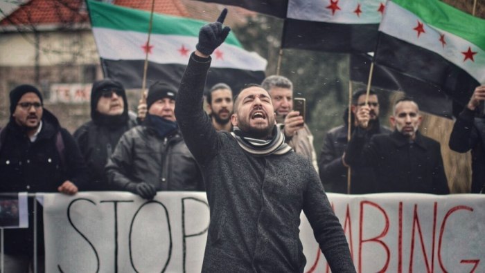 تظاهر عشرات اللاجئين السوريين، أمس الأحد، في العاصمة الهولندية أمستردام، احتجاجاً على المجازر الحاصلة بحق المدنيين في غوطة دمشق الشرقية، المحاصرة منذ عدة أعوام.