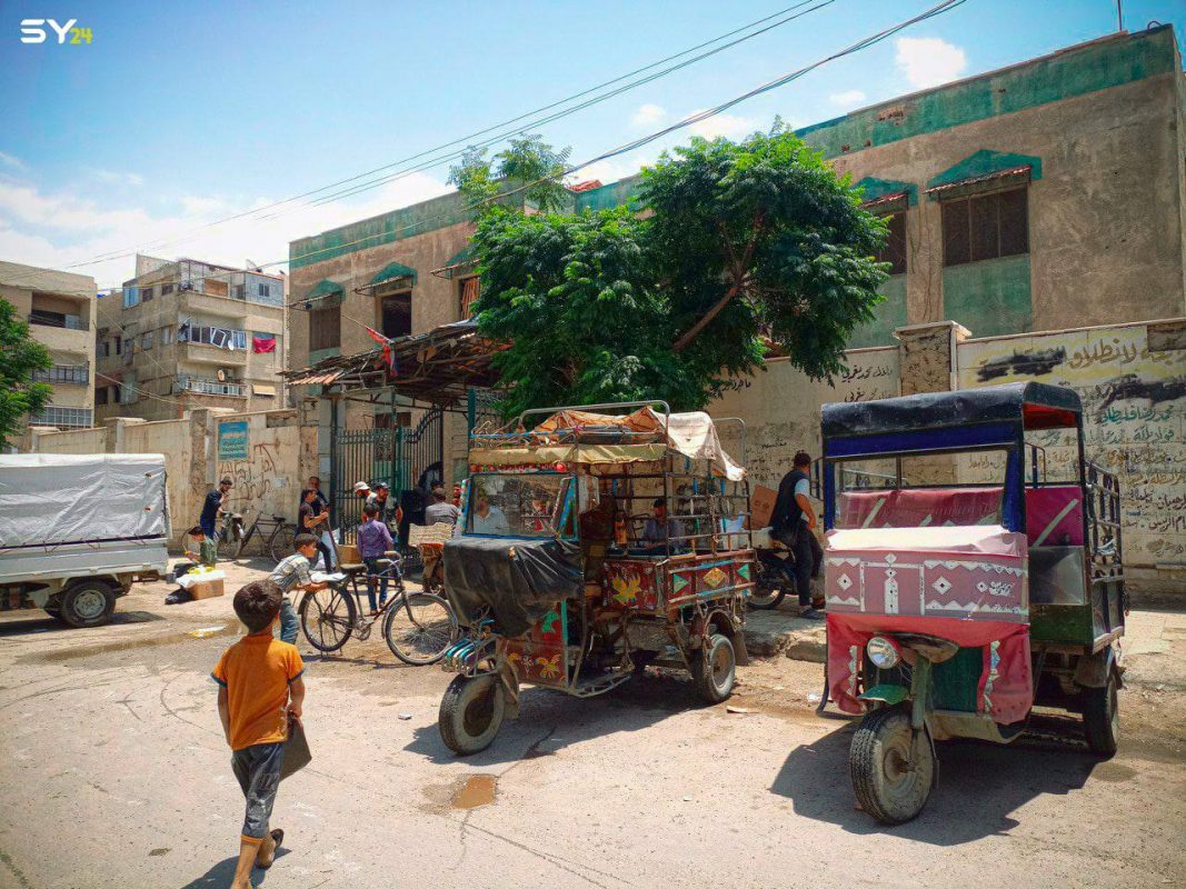 عدسة مراسلنا في المدينة، رصدت عشرات الشاحنات الصغيرة، المصطفة على الطرقات الرئيسية حيث تعمل على توصيل طلبات الأهالي داخلها وعلى أطرافها، مقابل مبلغ مالي بين 5 و7 آلاف ليرة سورية فقط.