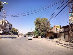 مكان الهنكار من الخارج الذي انفجر اللغم داخله، وسط إثارة مخاوف الأهالي ما أدى إلى انعدام الحركة المرورية بشكل كبير في المنطقة عند طريق دوما مسرابا.