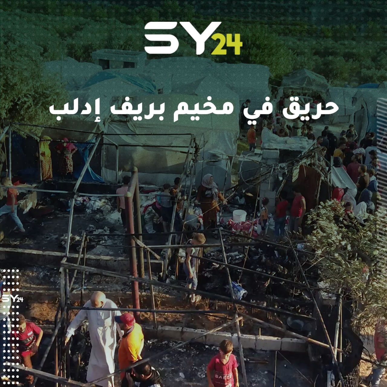 أضرار مادية بالغة جراء حريق نشب في أحد المخيمات العشوائية قرب مدينة سلقين بريف إدلب أدى لتشرّد أكثر من 20 عائلة 20/08/2021