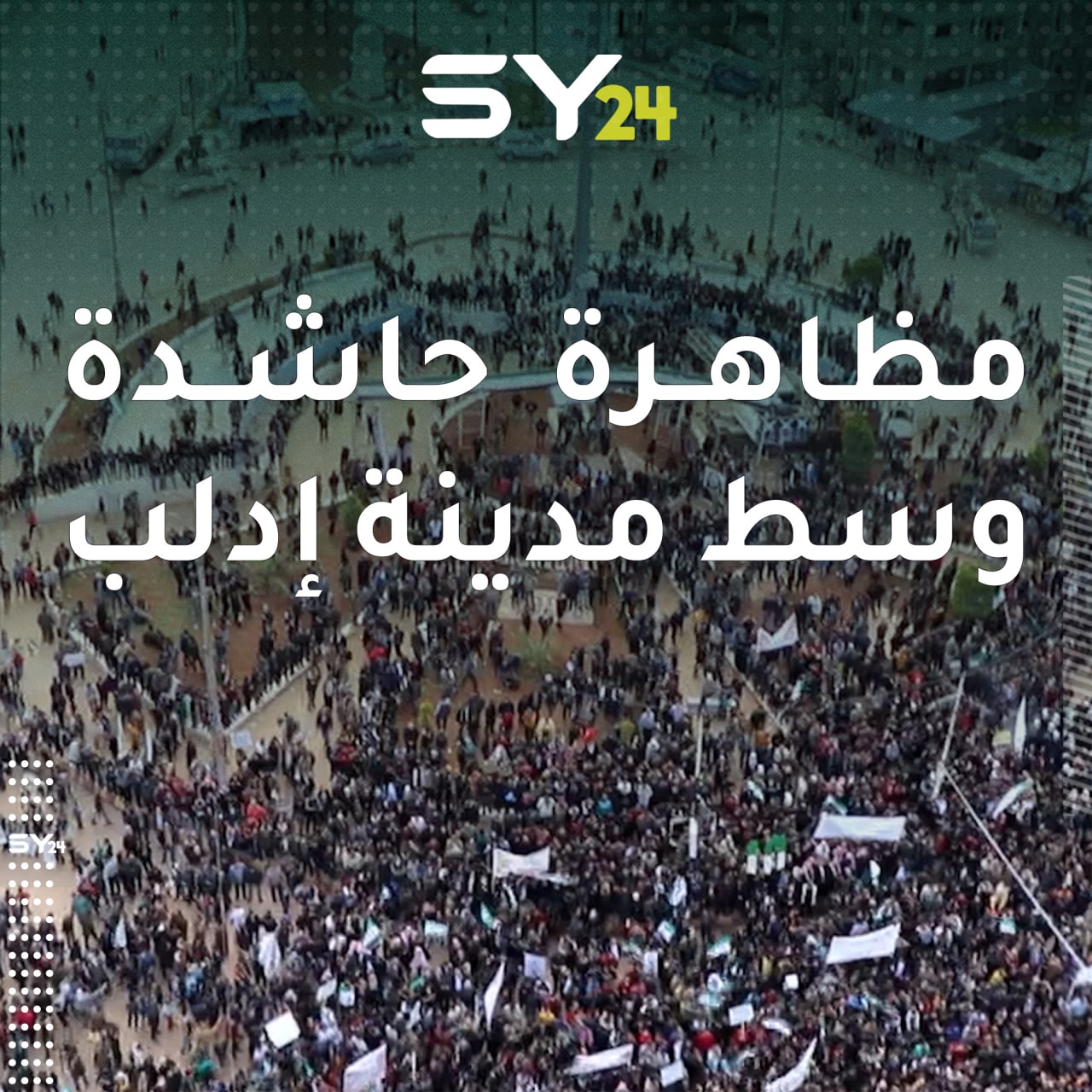 آلاف السوريين يحيون ذكرى عشر أعوام على اندلاع الثورة السورية وسط مدينة إدلب برفع سارية للعلم وترديد شعارات مناهضة للنظام. 15/03/2021