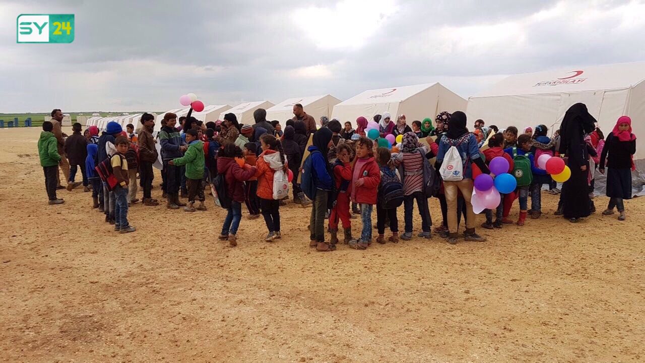 بناءُ مخيم في ريف حلب لإيواء العوائل المهجّرة من دوما يستعد أهالي ريف حلب الشمالي لاستقبال دفعة جديدة من مهجّري مدينة دوما بموجب الاتفاق الذي أبرمه “جيش الإسلام” مع روسيا بعد أعنف حملة عسكرية انتهت