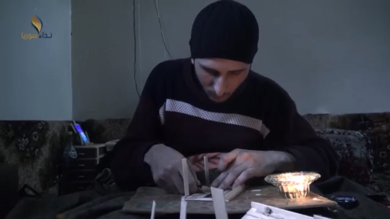شاب حمصي لم تمنعه إصابته من ابتكار أعمال تؤمّن له ثمن دوائه يعمل الشاب “عبيدة” الذي أُصيب بقصفٍ لقوات النظام السوري في عام 2012، بصناعة مجسمات لمدينة حمص التي هجر أهلها، وهو من أبناء منطقة الحولة في