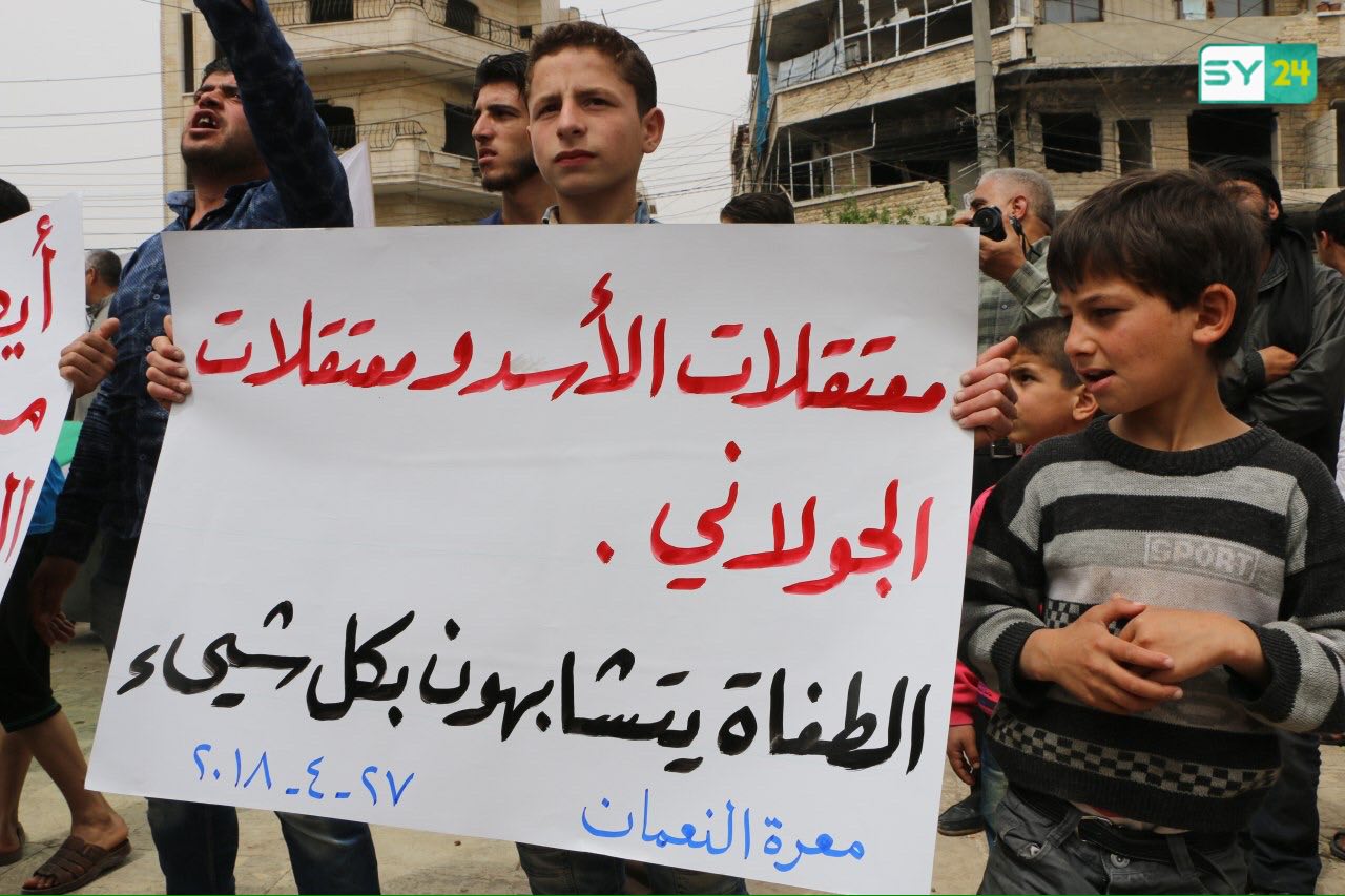 من ساحات معرة النعمان.. الجولاني والأسد يتشابهان بكل شيء