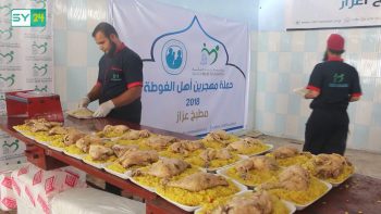 مؤسسة خيرية تقدم وجبات غذائية مجانية للمهجرين شمال حلب يقوم أكثر من 15 موظفاً في مؤسسة رحمة الإغاثية، بتجهيز وطهي الطعام المخصص للمهجرين من أهالي الغوطة الشرقية. وقال “عبد الوهاب” مدير فريق “رحمة الإغاثية”، [.....]