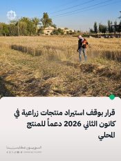 قرار بوقف استيراد منتجات زراعية في كانون الثاني 2026 دعماً للمنتج المحلي