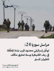 مراسل سوريا 24: توغّل إسرائيلي محدود قرب بلدة المعلّقة في ريف القنيطرة وسط تحليق مكثّف للطيران المسيّر 11/10/2025