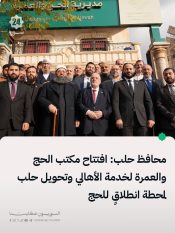 محافظ حلب: افتتاح مكتب الحج والعمرة لخدمة الأهالي وتحويل حلب لمحطة انطلاقٍ للحج