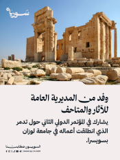 وفد من المديرية العامة للآثار والمتاحف يشارك في المؤتمر الدولي الثاني حول تدمر الذي انطلقت أعماله في جامعة لوزان بسويسرا. 30/10/2025