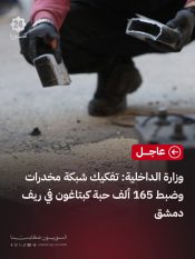وزارة الداخلية: تفكيك شبكة مخدرات وضبط 165 ألف حبة كبتاغون في ريف دمشق