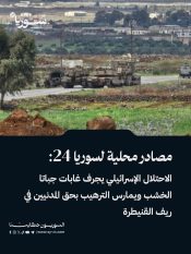 مصادر محلية لسوريا 24: الاحتلال الإسرائيلي يجرف غابات جباتا الخشب ويمارس الترهيب بحق المدنيين في ريف القنيطرة 18/10/2025