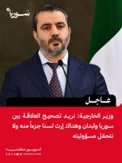 وزير الخارجية: نريد تصحيح العلاقة بين سوريا ولبنان وهناك إرث لسنا جزءاً منه ولا نتحمّل مسؤوليته 18/10/2025