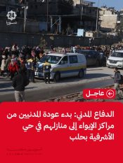 بدء عودة المدنيين من مراكز الإيواء المؤقتة إلى منازلهم في حي الأشرفية اليوم السبت 10 كانون الثاني. 10/01/2026