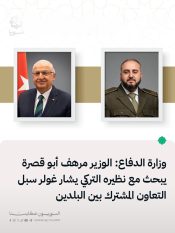 أجرى اللواء المهندس مرفق أبو قصرة اتصالاً هاتفياً مع وزير الدفاع التركي يشار غولر لبحث قضايا مشتركة. 10/01/2026