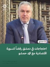خرجت اليوم مظاهرة أمام لجنة مكافحة الكسب غير المشروع في دمشق رفضاً للتسوية الاقتصادية مع رجل الأعمال محمد حمشو. 10/01/2026