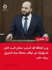 توقف ضخ المياه من محطة البابيري بريف حلب الشرقي اليوم عند الساعة 5:30 مساءً بسبب تدخل عناصر عسكرية تابعة لقسد. 10/01/2026