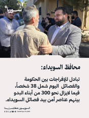 محافظ السويداء: تبادل للإفراجات بين الحكومة والفصائل اليوم شمل 38 شخصاً، فيما لايزال نحو 300 من أبناء البدو بينهم 08/10/2025