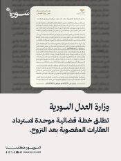 وزارة العدل السورية تطلق خطة قضائية موحدة لاسترداد العقارات المغصوبة بعد النزوح