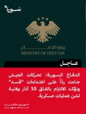 الدفاع السورية: تحركات الجيش جاءت ردّاً على اعتداءات “قسد” ونؤكد الالتزام باتفاق 10 آذار ولانية لشن عمليات عسكرية 06/10/2025