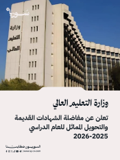 وزارة التعليم العالي تعلن عن مفاضلة الشهادات القديمة والتحويل المماثل للعام الدراسي 2025-2026 02/10/2025
