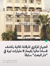 الجهاز المركزي للرقابة المالية يكشف فساداً ماليا بقيمة 8 مليارات ليرة في “دار البعث” سابقاً 10/12/2025