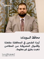 محافظ السويداء: أزمة الطحين في المحافظة مفتعلة والأموال المصروفة من المطاحن ذهبت بطرق غير معلومة 26/09/2025