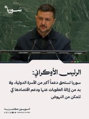 الرئيس الأوكراني: سوريا تستحق دعماً أكبر من الأسرة الدولية، ولا بد من إزالة العقوبات عنها ودعم اقتصادها كي تتمكن من النهوض. 24/09/2025